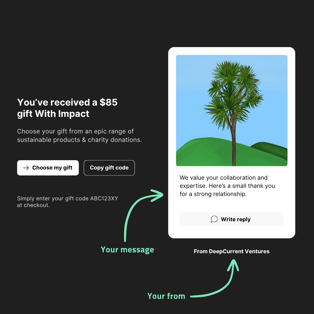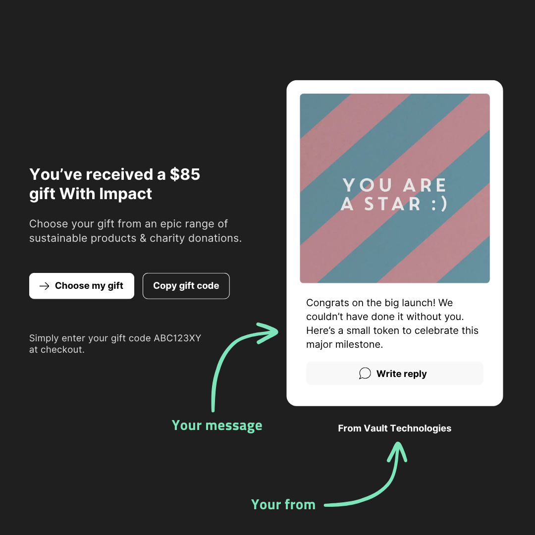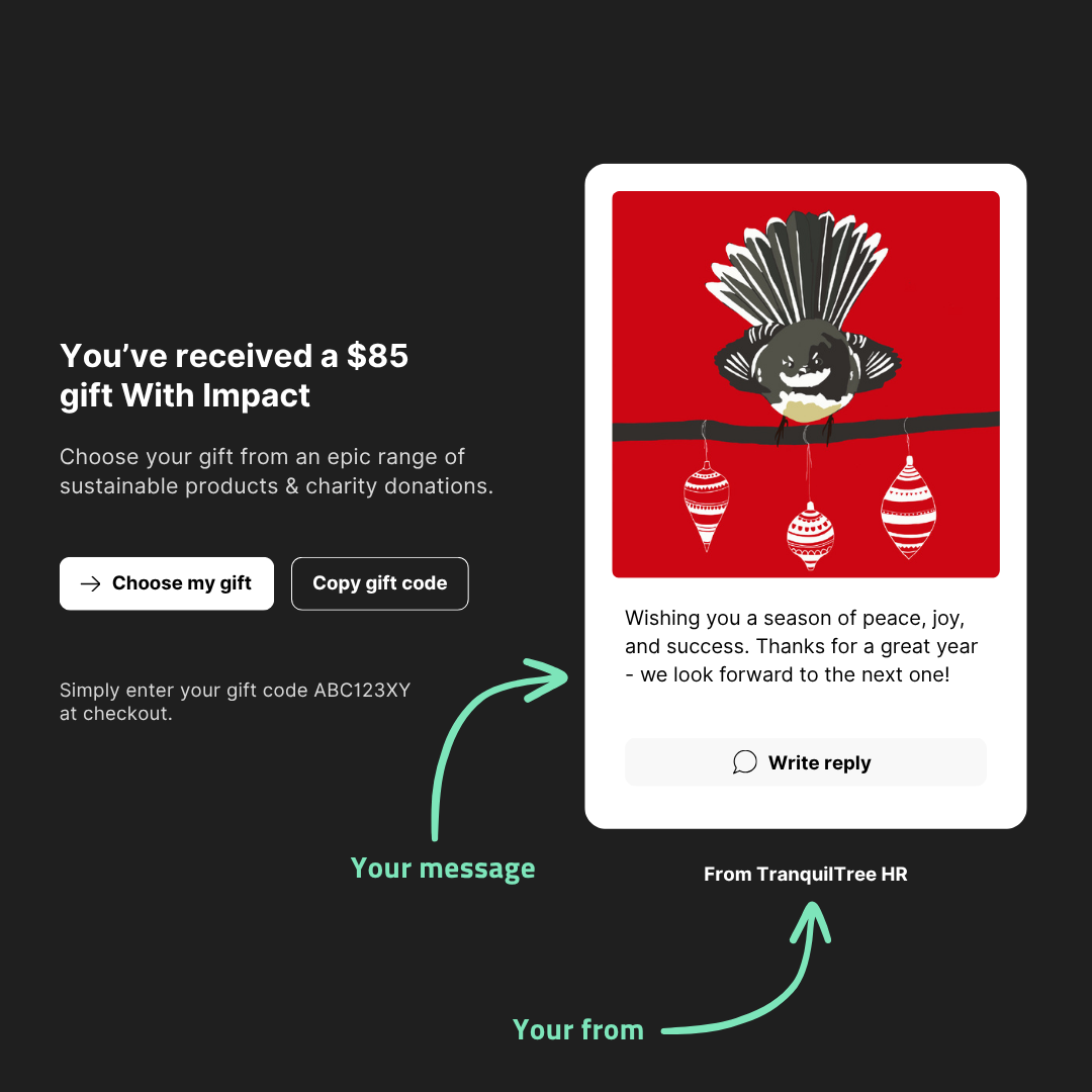 You'll make their day with a thoughtful message then they'll choose their perfect gift – with $85 to spend on With Impact.