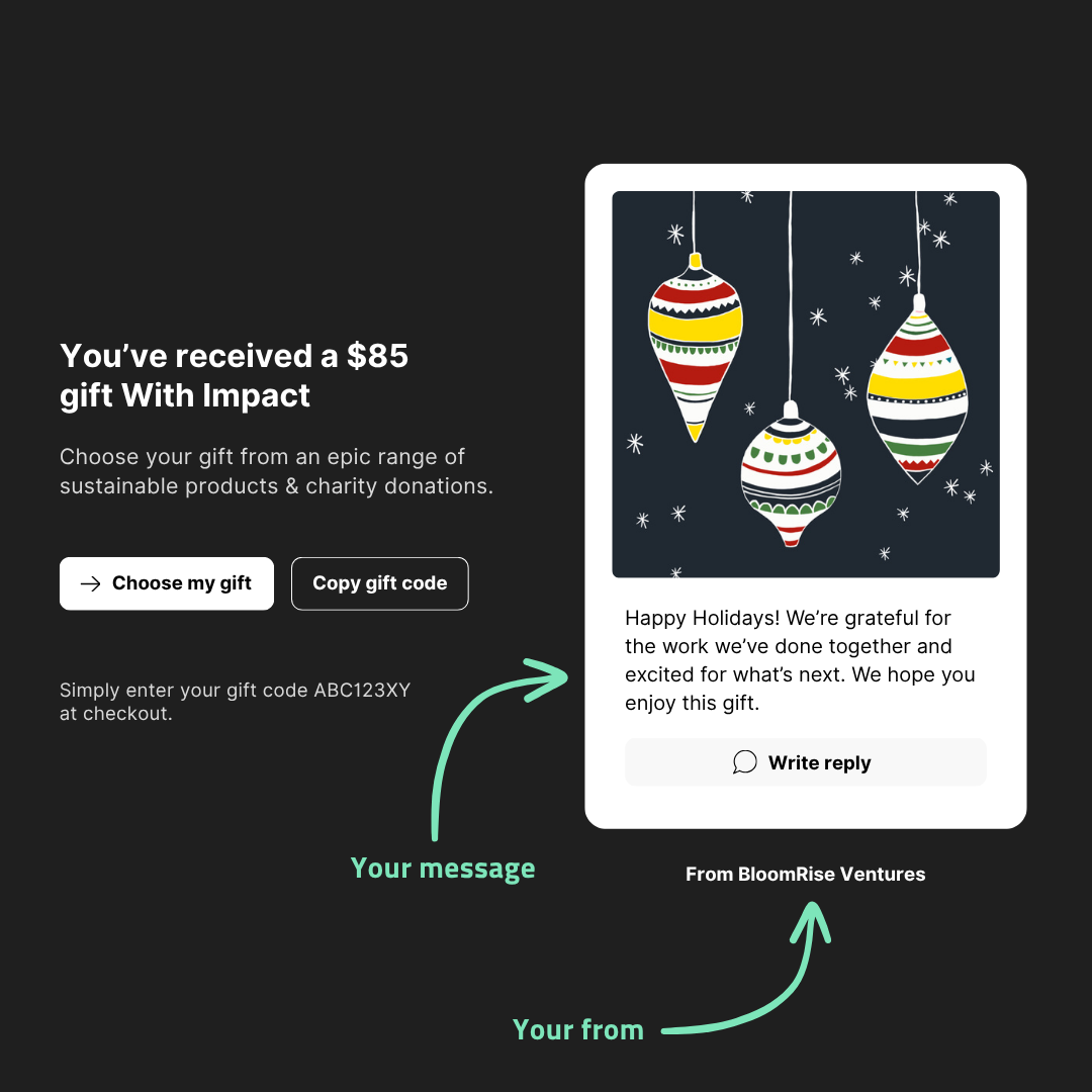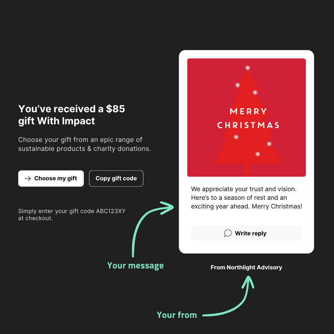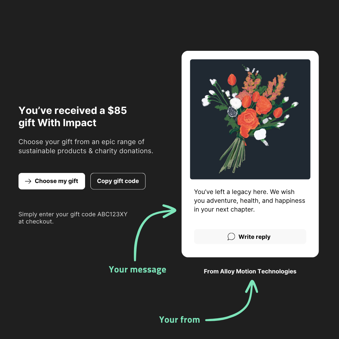 You'll make their day with a thoughtful message then they'll choose their perfect gift – with $85 to spend on With Impact.